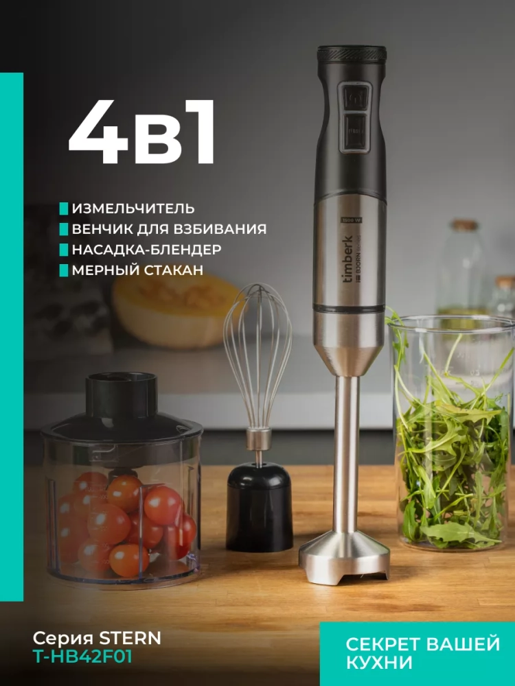 Погружной блендер Timberk T-HB42F01 серии BJORN - это портативный электрический блендер 3 в 1, который станет идеальным помощником на вашей кухне. С его помощью вы сможете легко и быстро измельчать, смешивать и взбивать различные ингредиенты для приготовления разнообразных блюд.