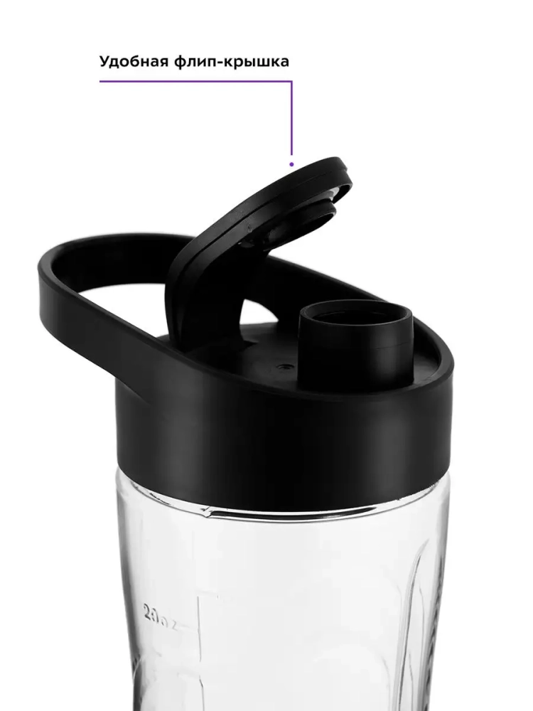 Корпус блендера выполнен из прочного пластика и нержавеющей стали, что обеспечивает долговечность и надежность. В комплекте идут две портативные бутылки для функции Shake & Take, которые позволяют готовить и хранить протеиновые смеси и фитнес-напитки. Бутылки оснащены навинчивающимися крышками и ручками для переноски, что делает их удобными для использования в спортзале или в автомобиле.