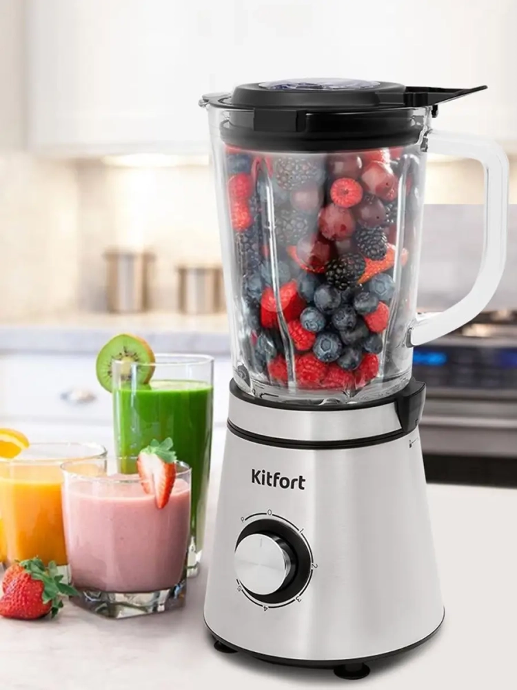 Блендер стационарный Kitfort КТ-3021 — это идеальное решение для тех, кто ценит качество и функциональность. Этот мощный прибор с чашей емкостью 1,5 литра предназначен для приготовления разнообразных напитков и блюд: от смузи и коктейля до супов-пюре. Блендер оснащен пятью скоростями работы и импульсным режимом, что позволяет легко справляться даже с колкой льда. Регулятор скорости на моторном блоке обеспечивает плавное переключение между режимами, позволяя выбрать оптимальный способ приготовления. Корпус блендера выполнен из прочного пластика с декоративной вставкой из нержавеющей стали, что придает ему стильный внешний вид. Стеклянная чаша снабжена мерной шкалой и специальным отверстием в крышке для добавления ингредиентов во время работы. Мерный колпачок объемом 50 мл закрывает это отверстие, обеспечивая удобство использования. Мощность двигателя составляет 1000 Вт, что гарантирует надежную работу устройства на протяжении длительного времени. Ножи из нержавеющей стали обеспечивают долгий срок службы и высокую эффективность смешивания. Этот настольный blender китфорт станет незаменимым помощником на вашей кухне благодаря своей универсальности и простоте в использовании. Электроприбор идеально подходит как для ежедневного использования в приготовлении детского питания или соусов, так и для создания сложных кулинарных шедевров.
