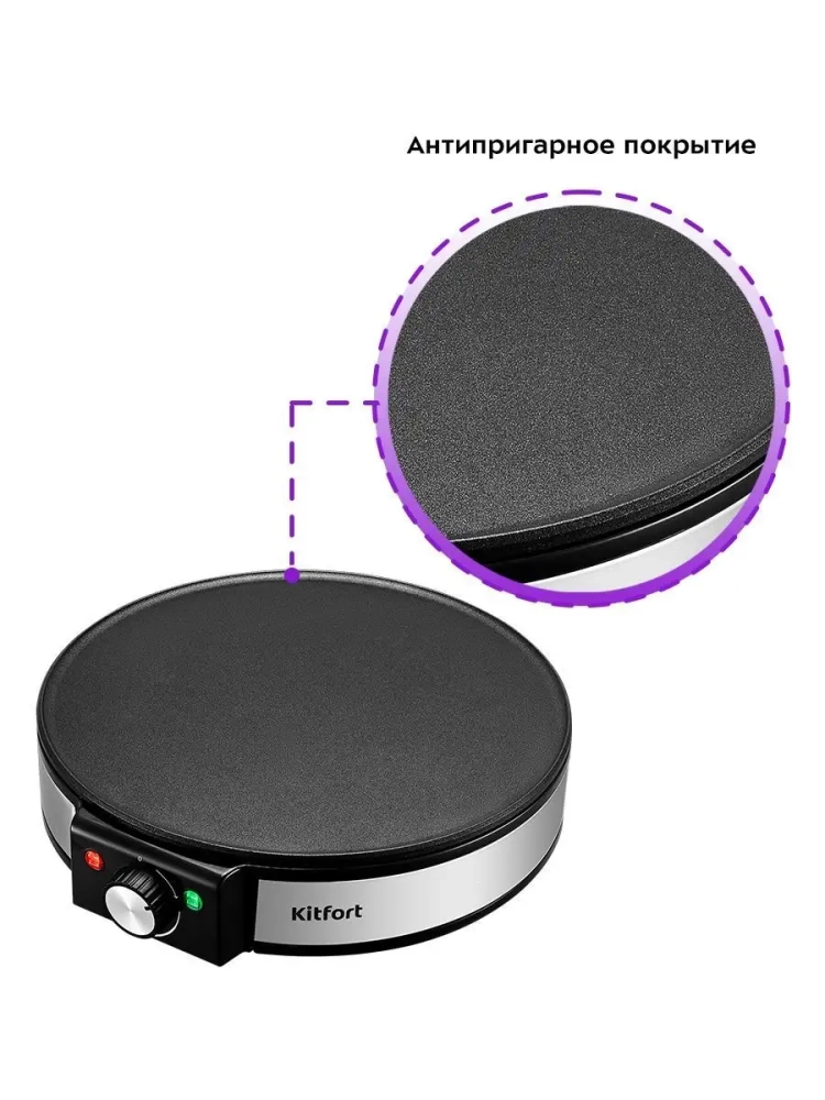 С помощью этого электрического устройства приготовление блиниц занимает минимальное время. Современная бытовая техника от Kitfort — это гарант качества и надежности. Погружная система нагрева равномерно распределяет тепло, что делает процесс выпечки еще более эффективным. А возможность использования тарелок помогает сохранить идеальную форму и текстуру блинчиков.