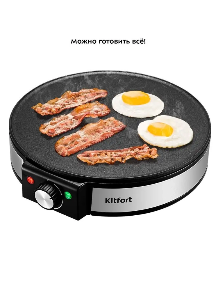 Техника Kitfort станет незаменимым девайсом на любой кухне. Блинная сковорода выполнена в стильном дизайне, который гармонично впишется в интерьер. Электрическая система управления делает блинницу сейфовой и удобной в эксплуатации. Электроблинницы идеально подходят для приготовления разнообразных начинок, добавляя разнообразие в ваш рацион.