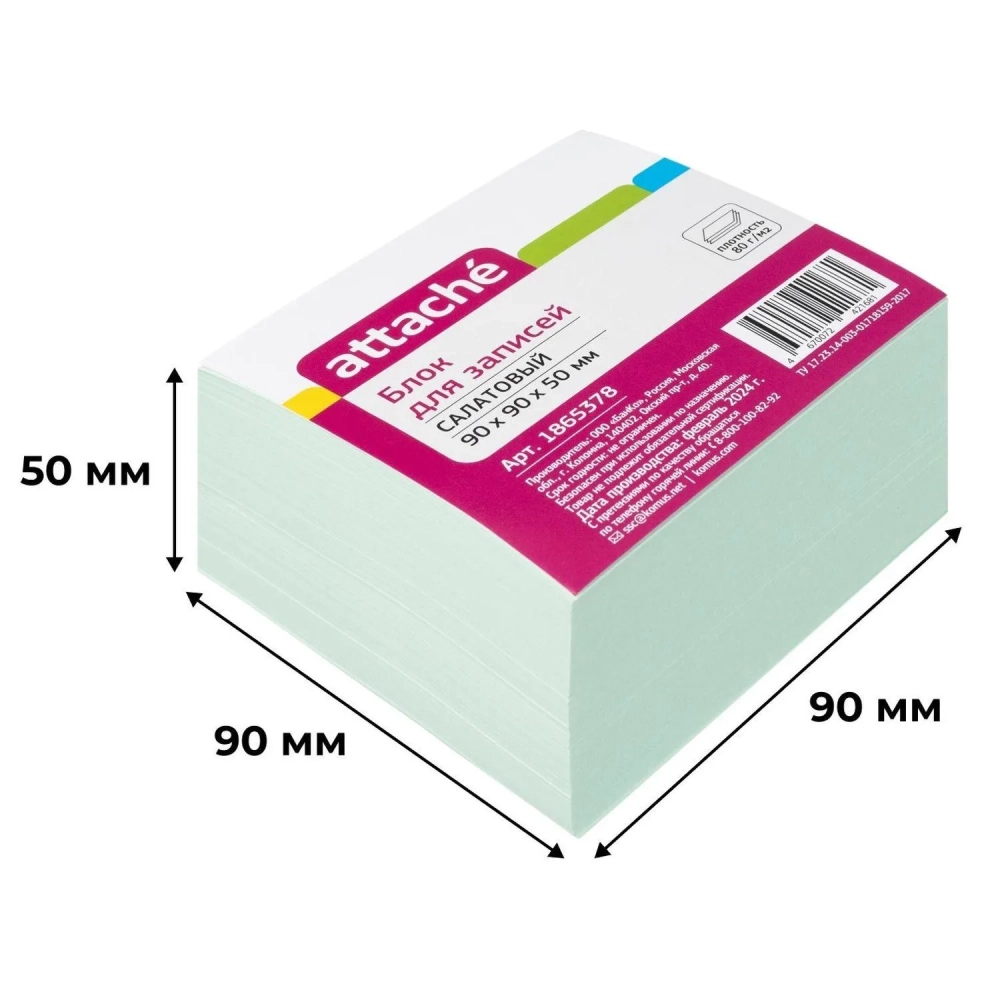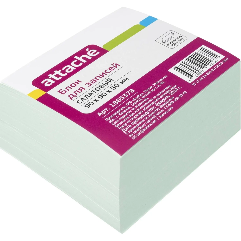 Блок для записей Attache 90x90x50 салатовый 80г