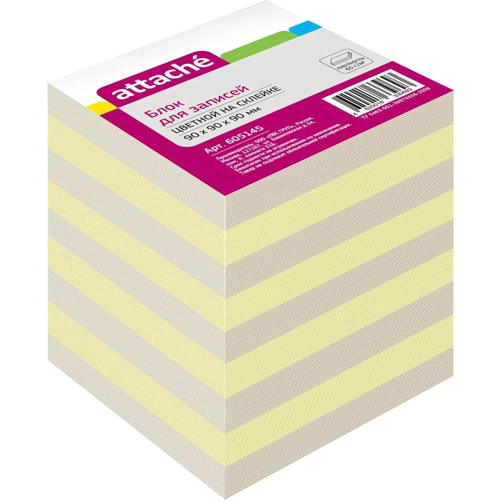 Блок для записей Attache Economy на склейке 9х9х9 цветной 80 г