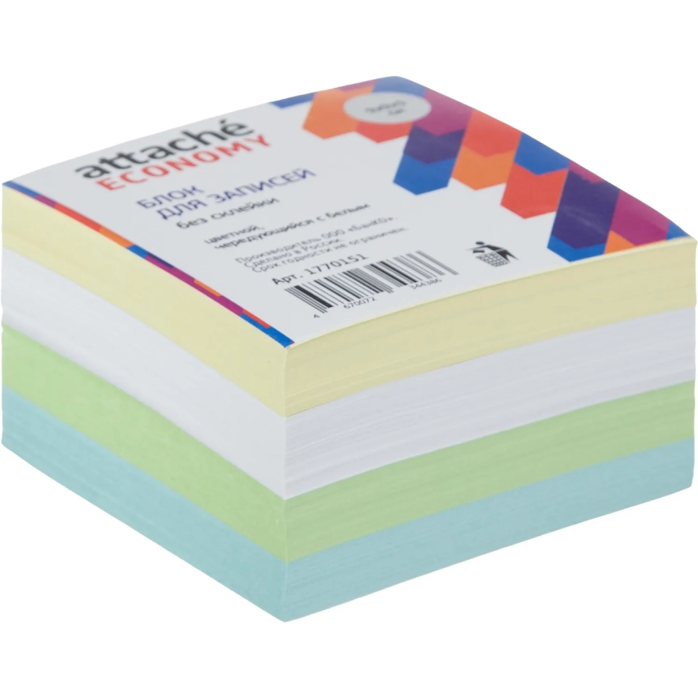 Блок для записей Attache Economy непроклеен.9х9х5см цвет. с белым 65-80 г
