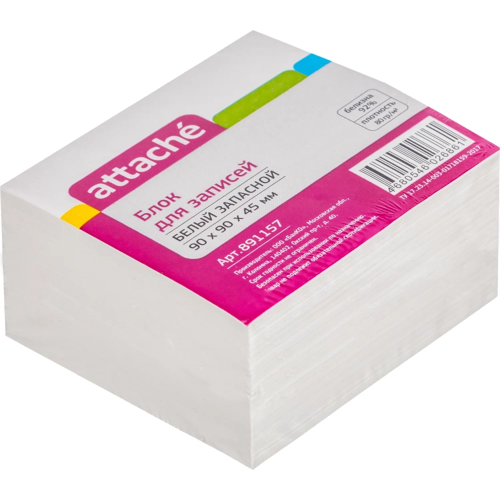 Блок для записей ATTACHE ЭКОНОМ запасной 9х9х4,5 белый 80 г, 92