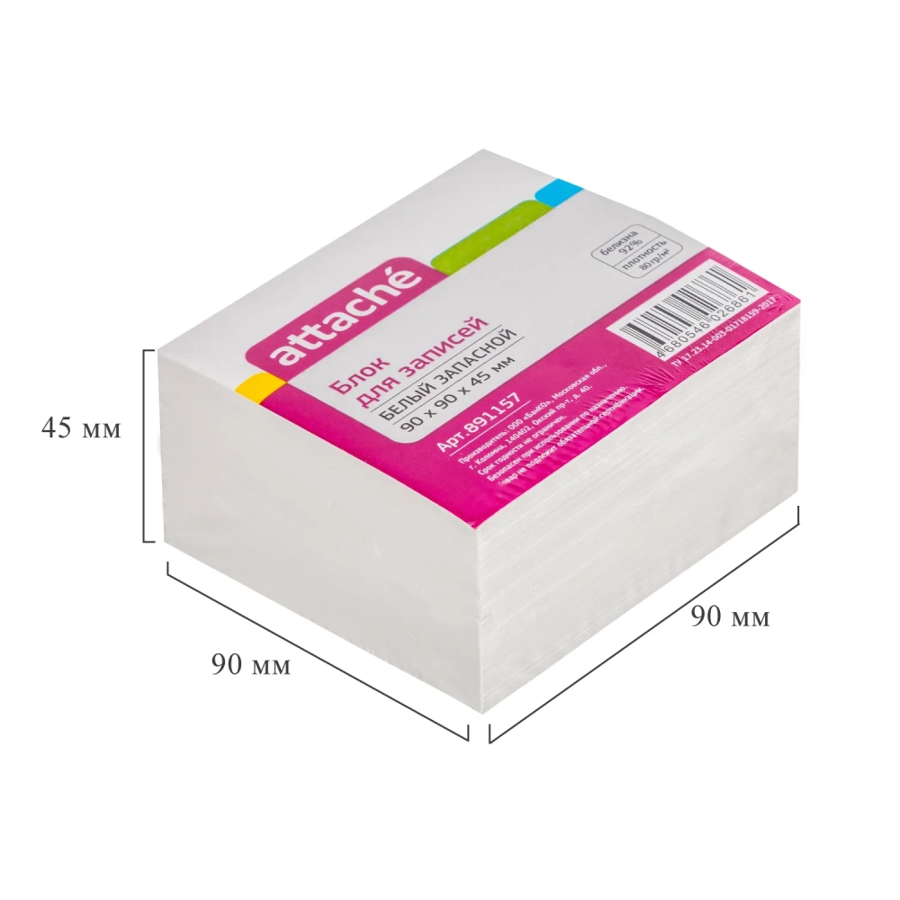 Блок для записей ATTACHE ЭКОНОМ запасной 9х9х4,5 белый 80 г, 92