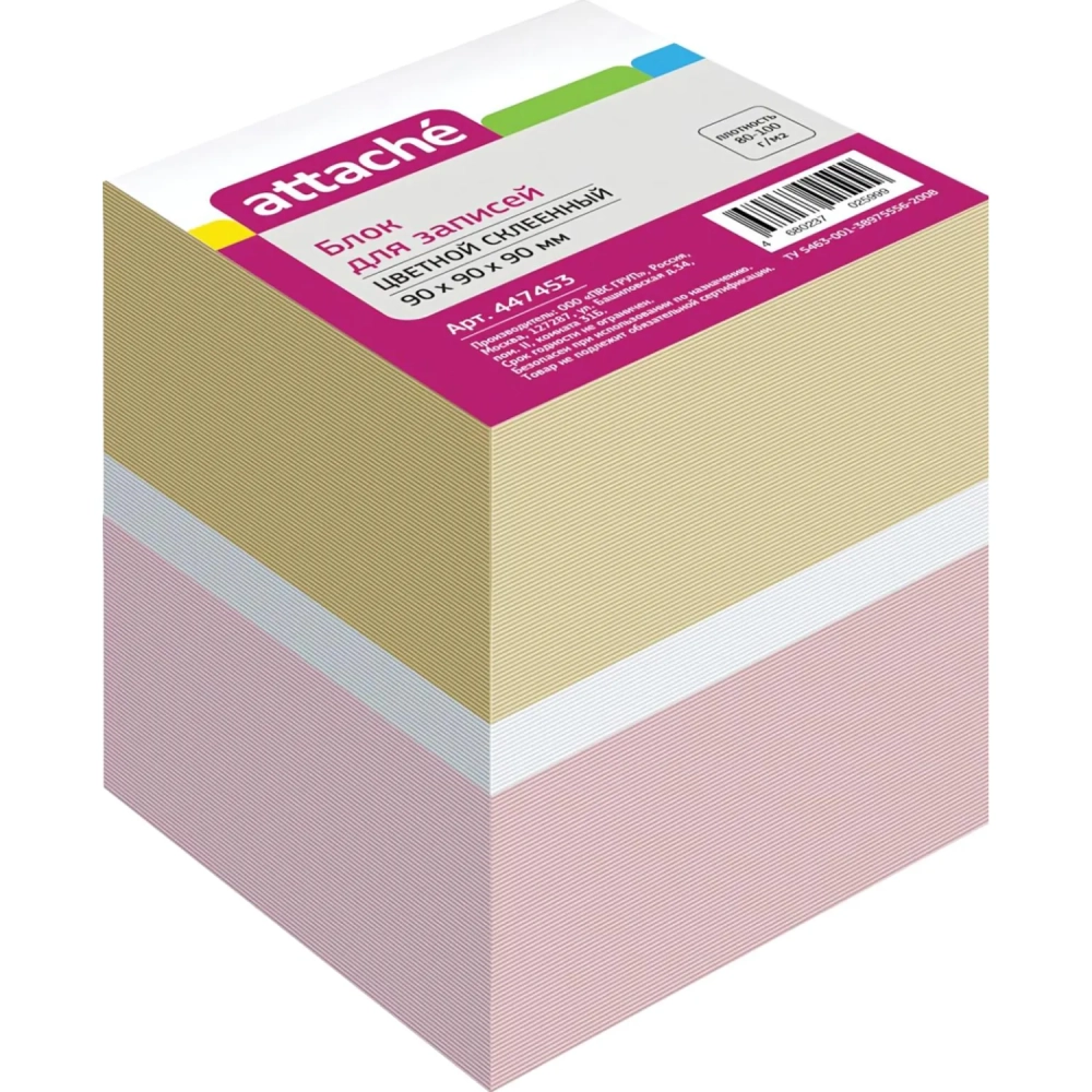 Блок для записей ATTACHE на склейке 9х9х9 цветной блок 80г