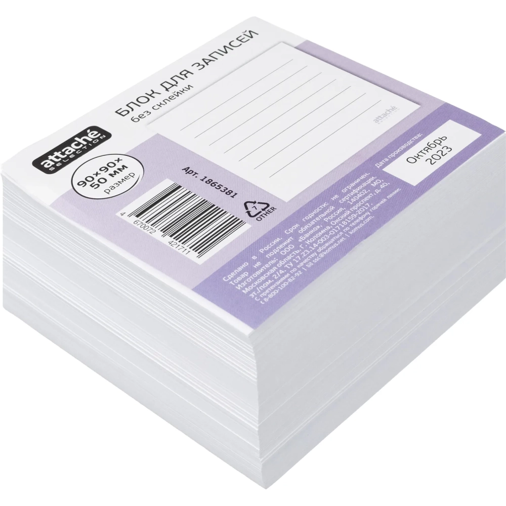 Блок для записей Attache Selection 90x90x50, белый 100г