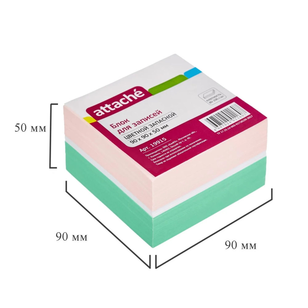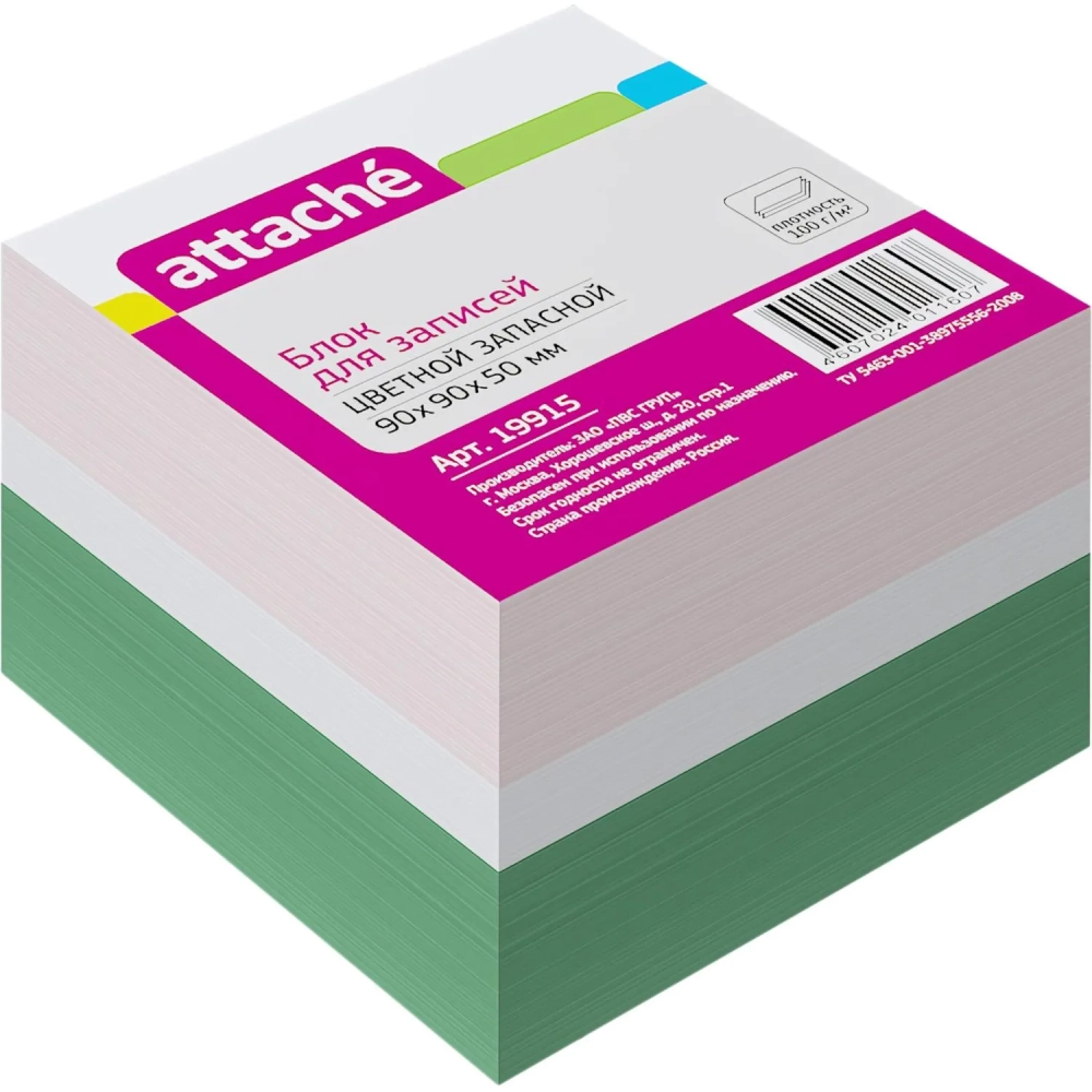 Блок для записей ATTACHE запасной 9х9х5 цветной блок 80г