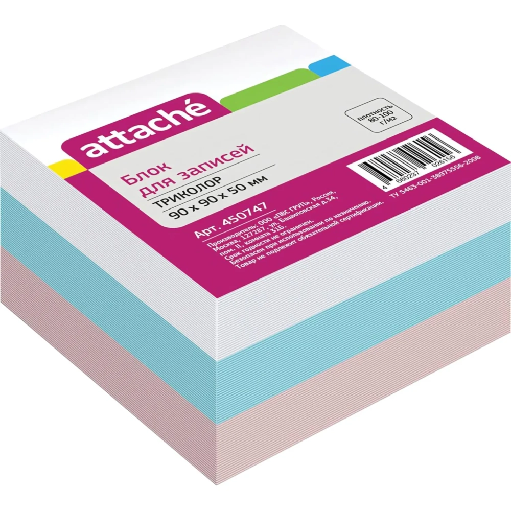 Блок для записей ATTACHE запасной 9х9х5 триколор 80г