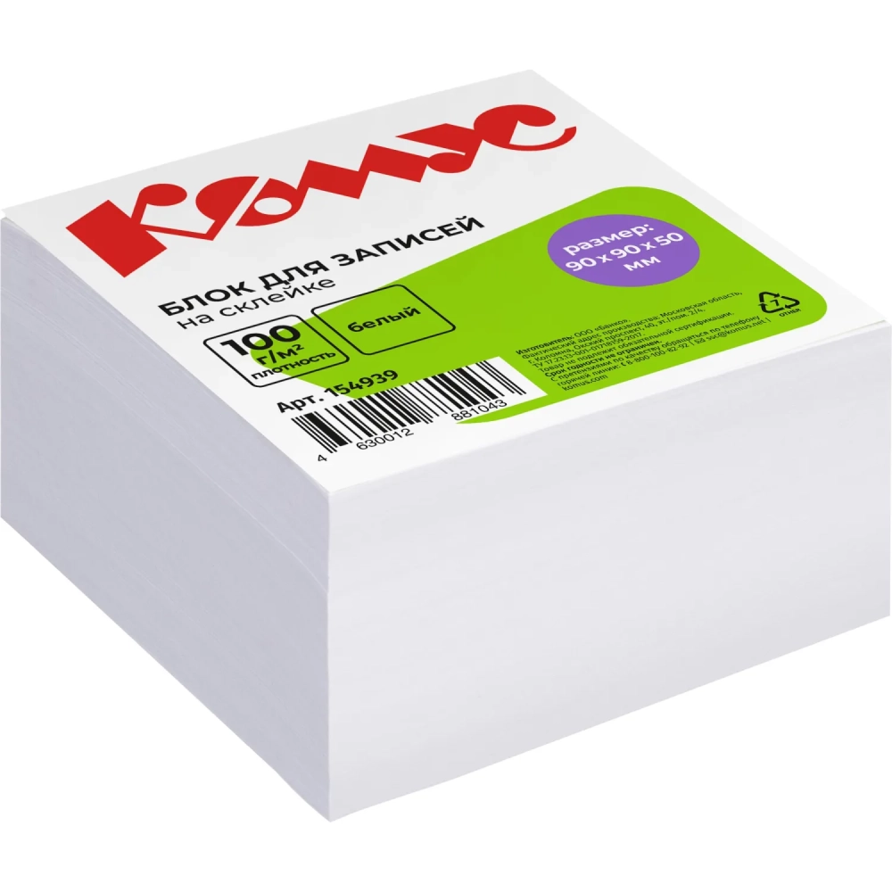 Блок для записей КОМУС на склейке 9х9х5 белый блок 100г