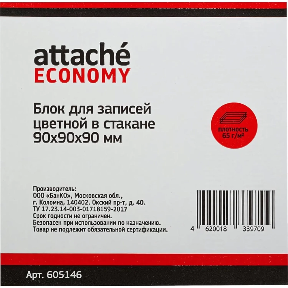 Блок для записей в подставке ATTACHE ЭКОНОМ в стакане 9х9х9 цветной 65-80г