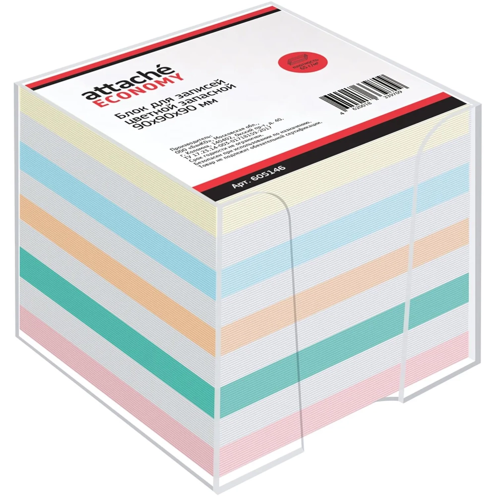 Блок для записей в подставке ATTACHE ЭКОНОМ в стакане 9х9х9 цветной 65-80г