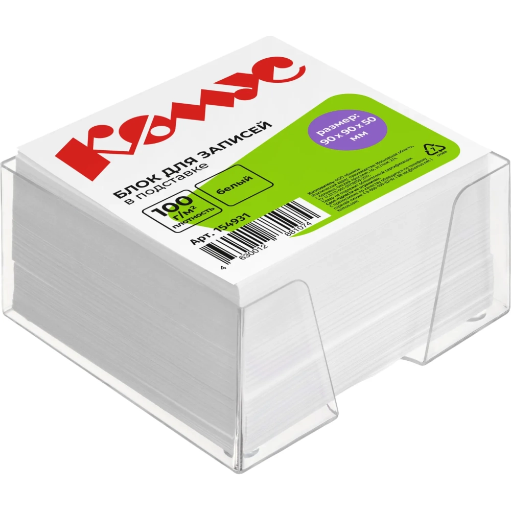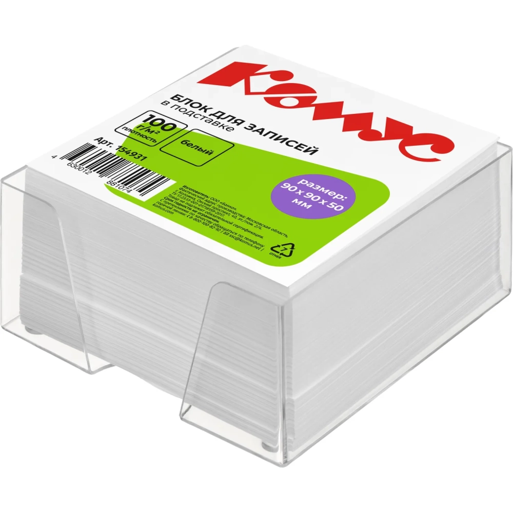 Блок для записей в подставке КОМУС в стакане 9х9х5 белый блок 100 г, 100