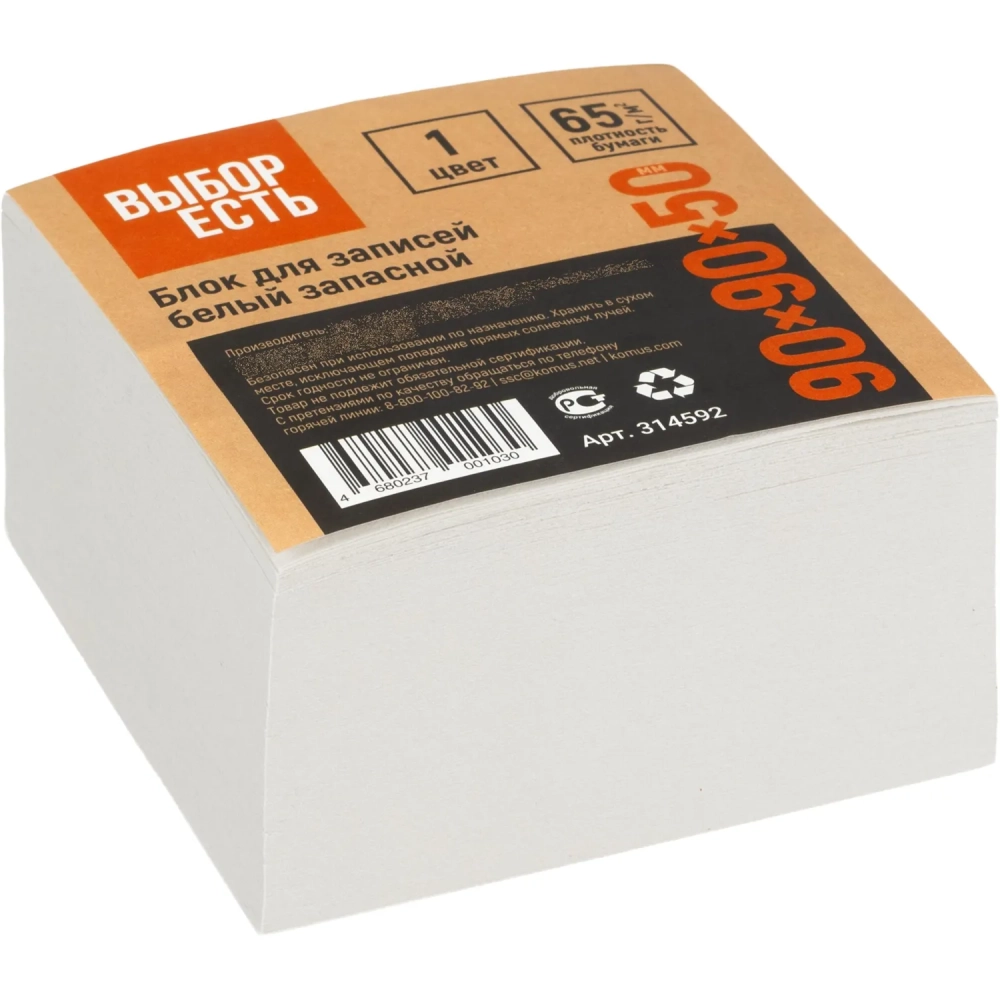 Блок для записей запасн. 9х9х5 белый 65 г