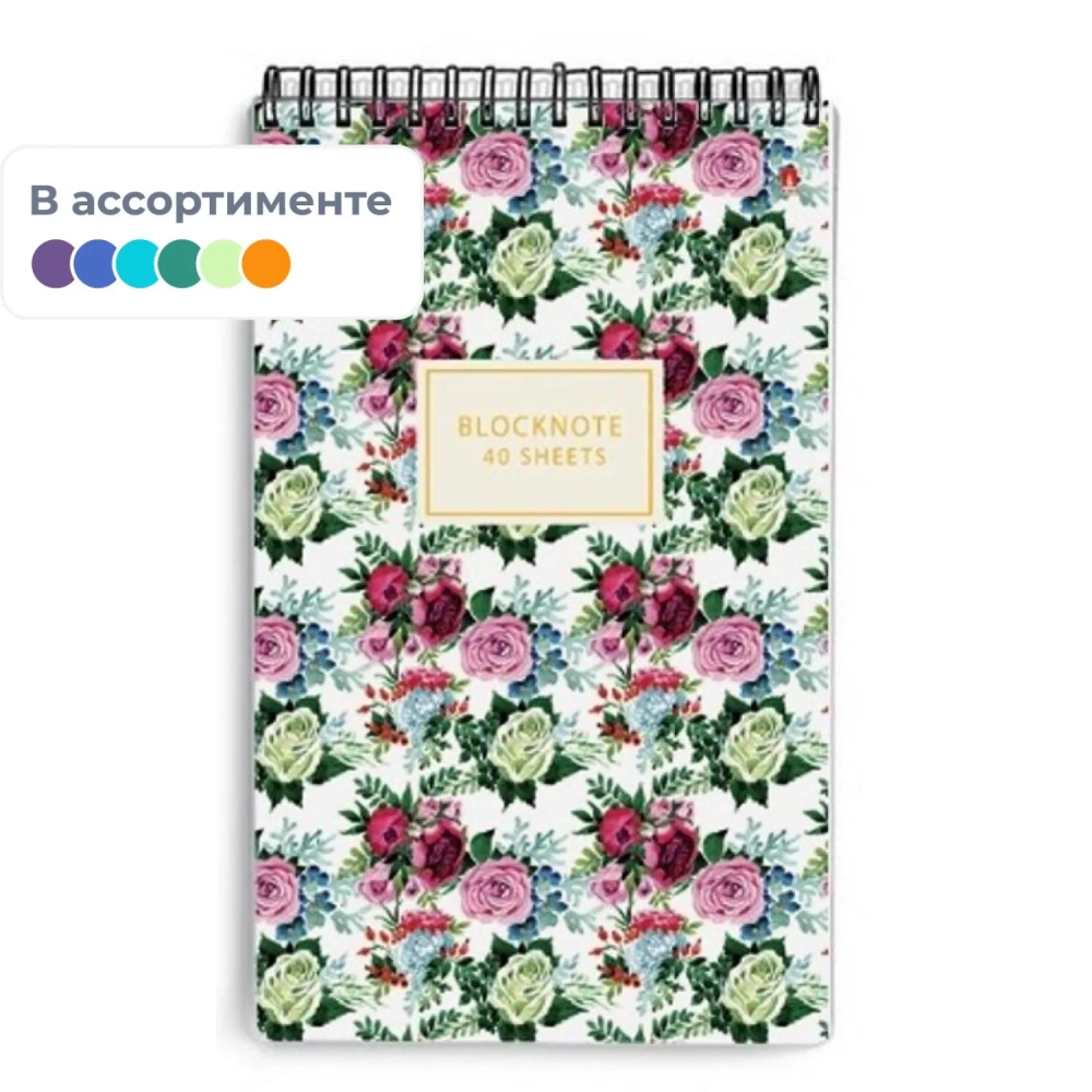 Блокнот А5,40л,клетка,гребень ЦВЕТЫ.ПАТТЕРН 3-40-251 в ассорт