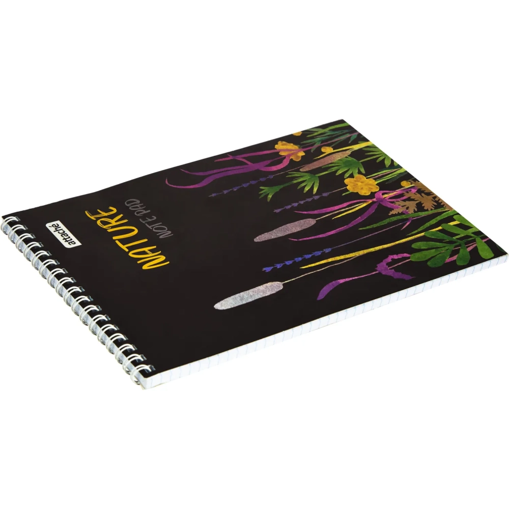 Блокнот А5 60л Attache Nature Black flowers клет,65г,100%,греб,карт,ВД-лак