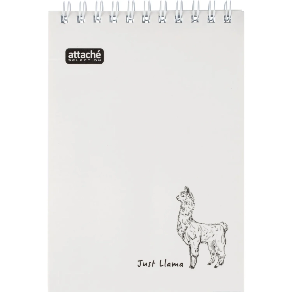 Блокнот А6,80л,кл,греб,карт.обл+УФ-лак Attache Selection LLAMAS белый