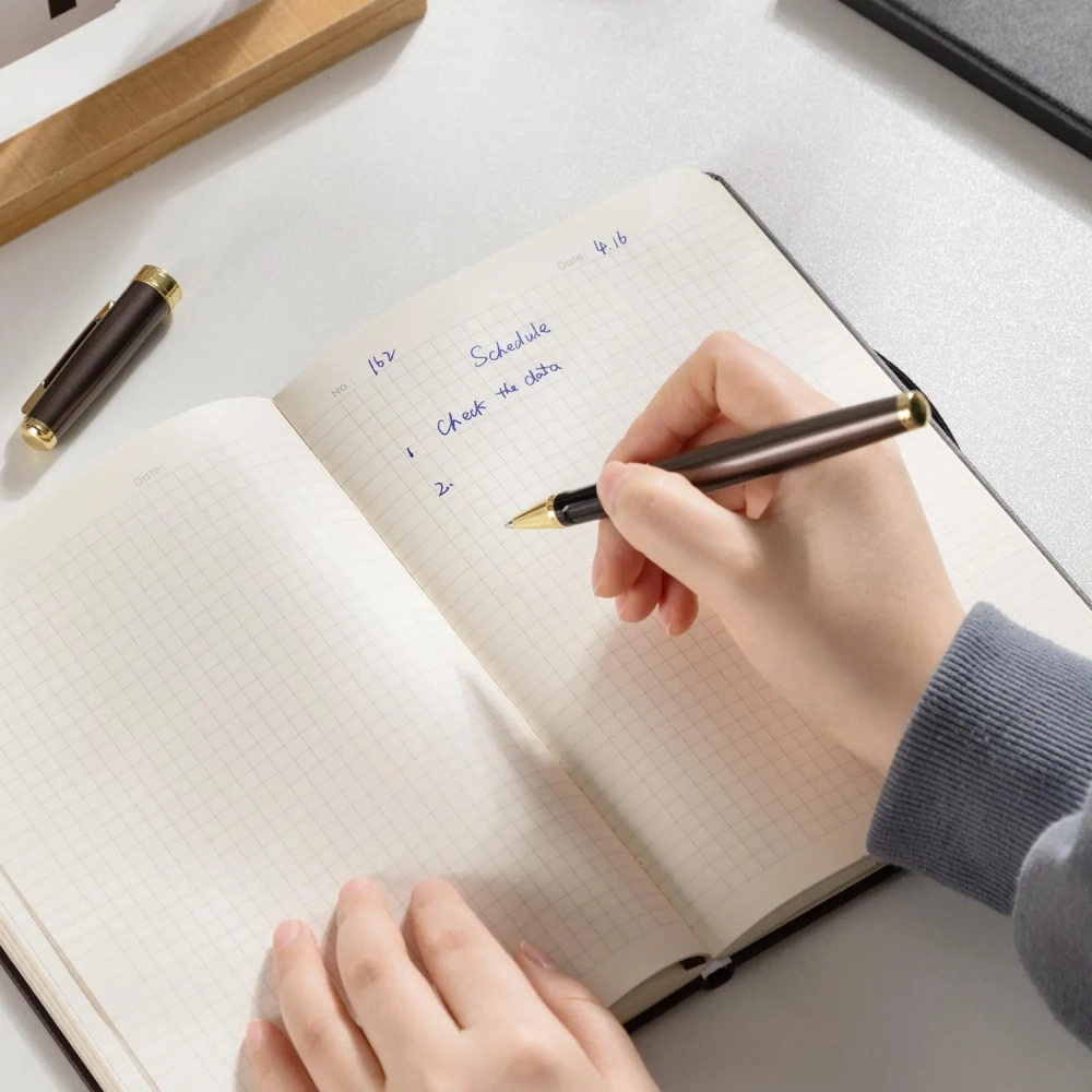 Блокнот Deli А5 80л 70 г/м тверд.обложка клетка 5x5мм черный кожа EN111G