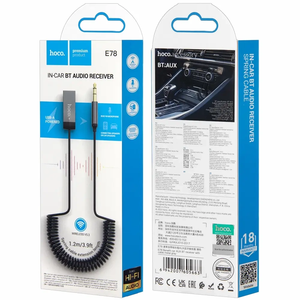 *Bluetooth ресивер E78 Hoco серый
