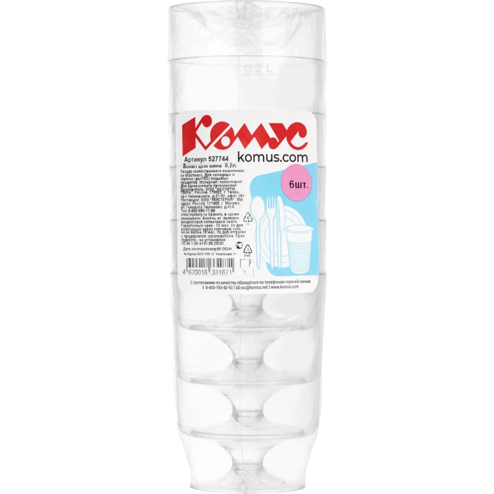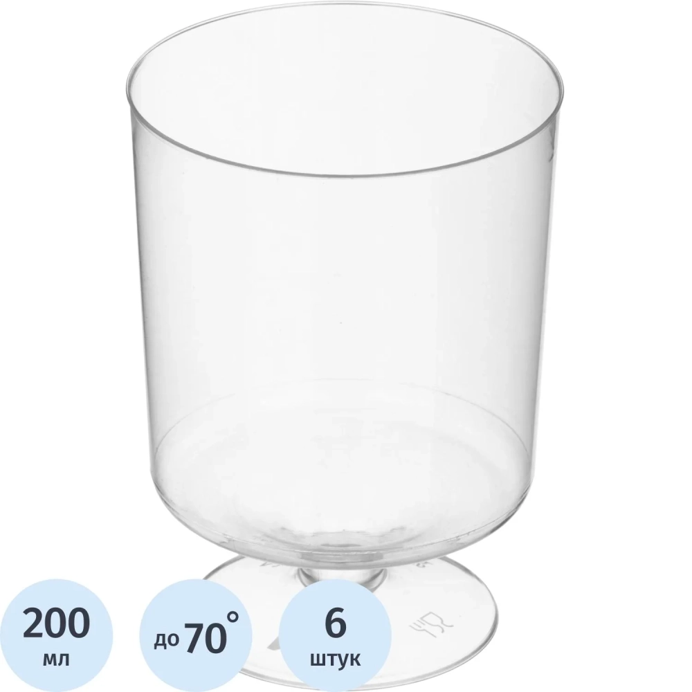 Бокал одноразовый д/вина Комус 0,2 мл,кристалл,ПС 6шт./уп. 12уп./кор. Росси