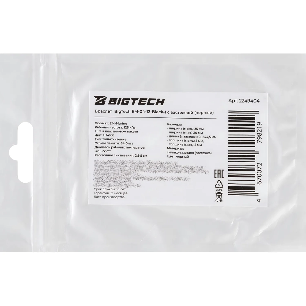 Браслет Bigtech EM-Marine, с застежкой (черный)