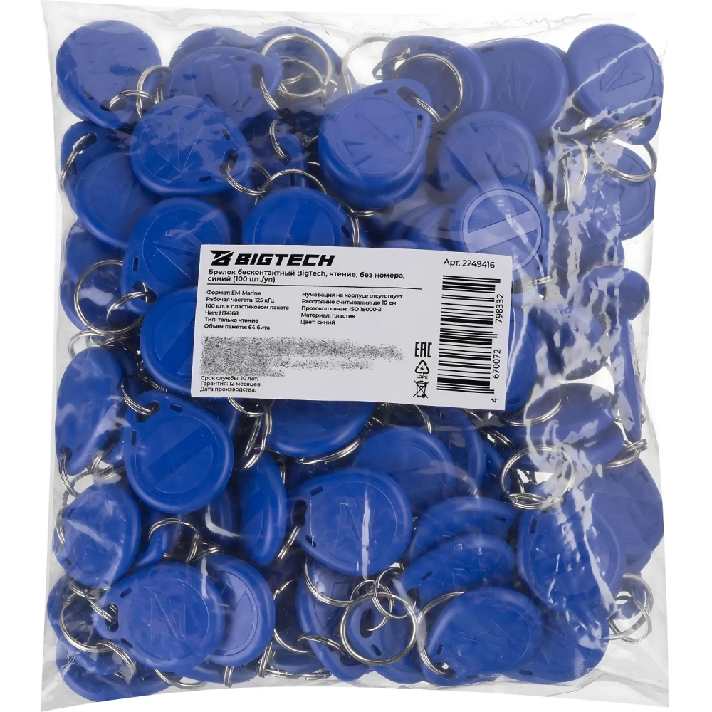 Брелок бесконтактный Bigtech EM-Marine чтение, без номера синий (100шт/уп)