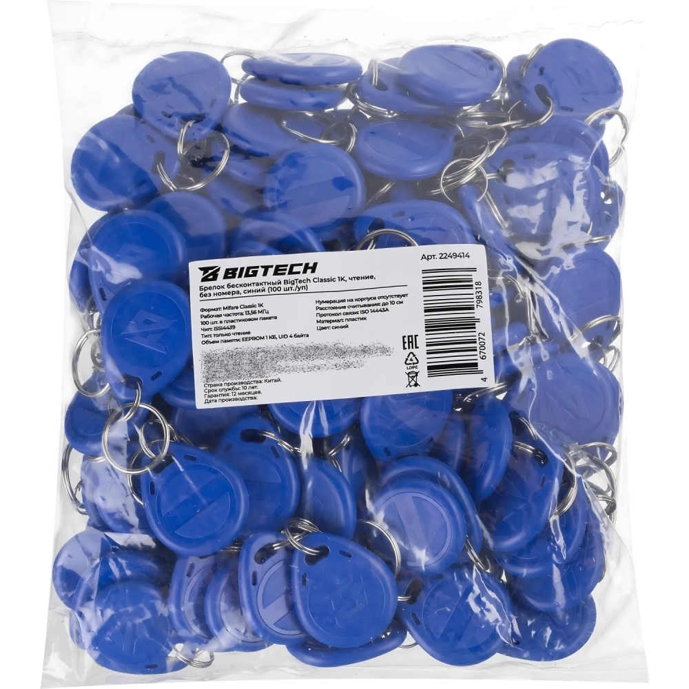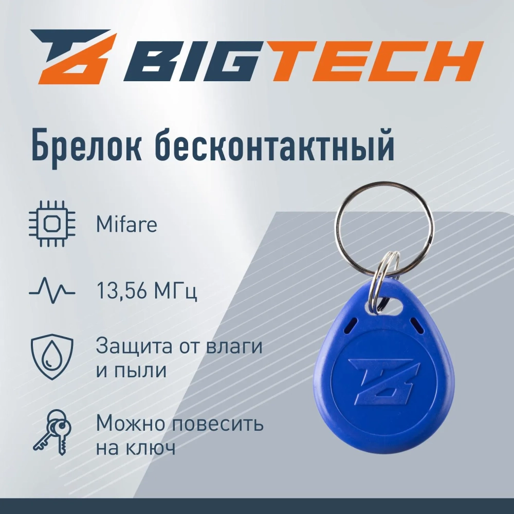 Брелок бесконтактный Bigtech Mifare Classic 1K, чтен,без ном син(100шт/уп)