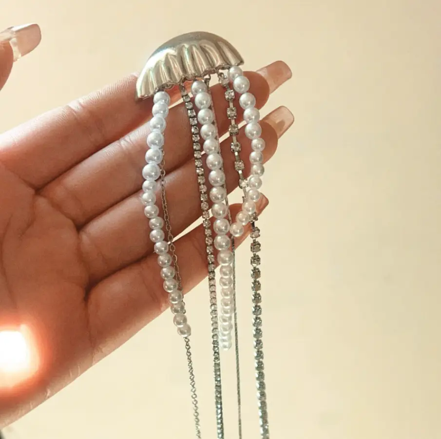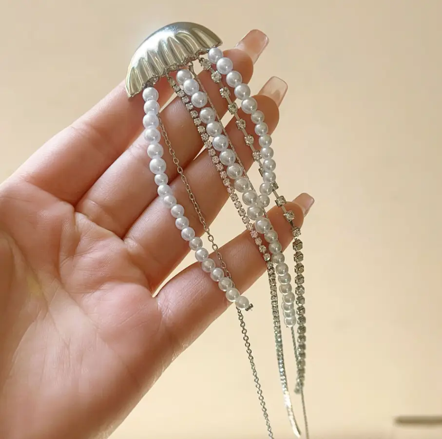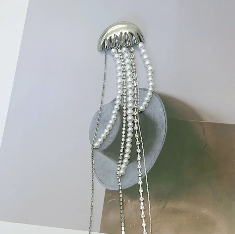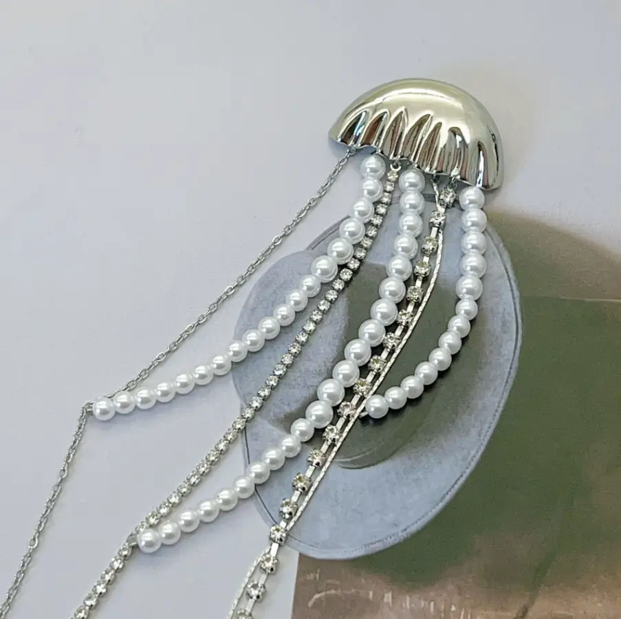 Брошь Медуза со стразами и жемчугом 20 см