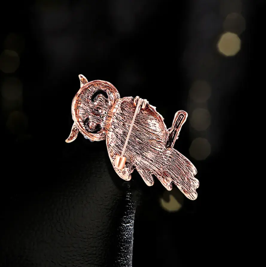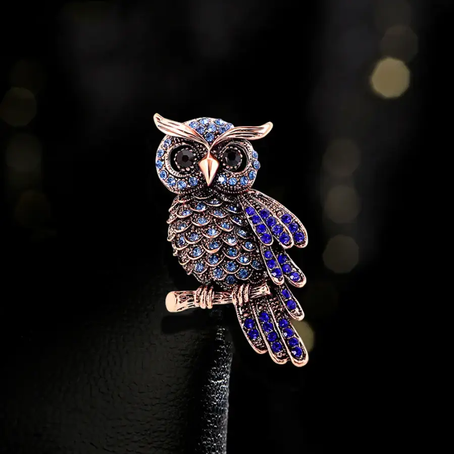 Брошь Сова с голубыми и синими камнями