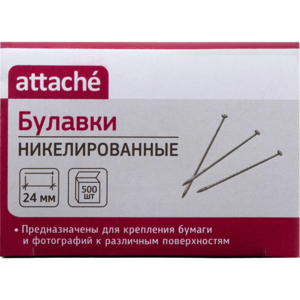 Булавки унив. ник. Attache, 24 мм, 500 штук, в картонной коробке