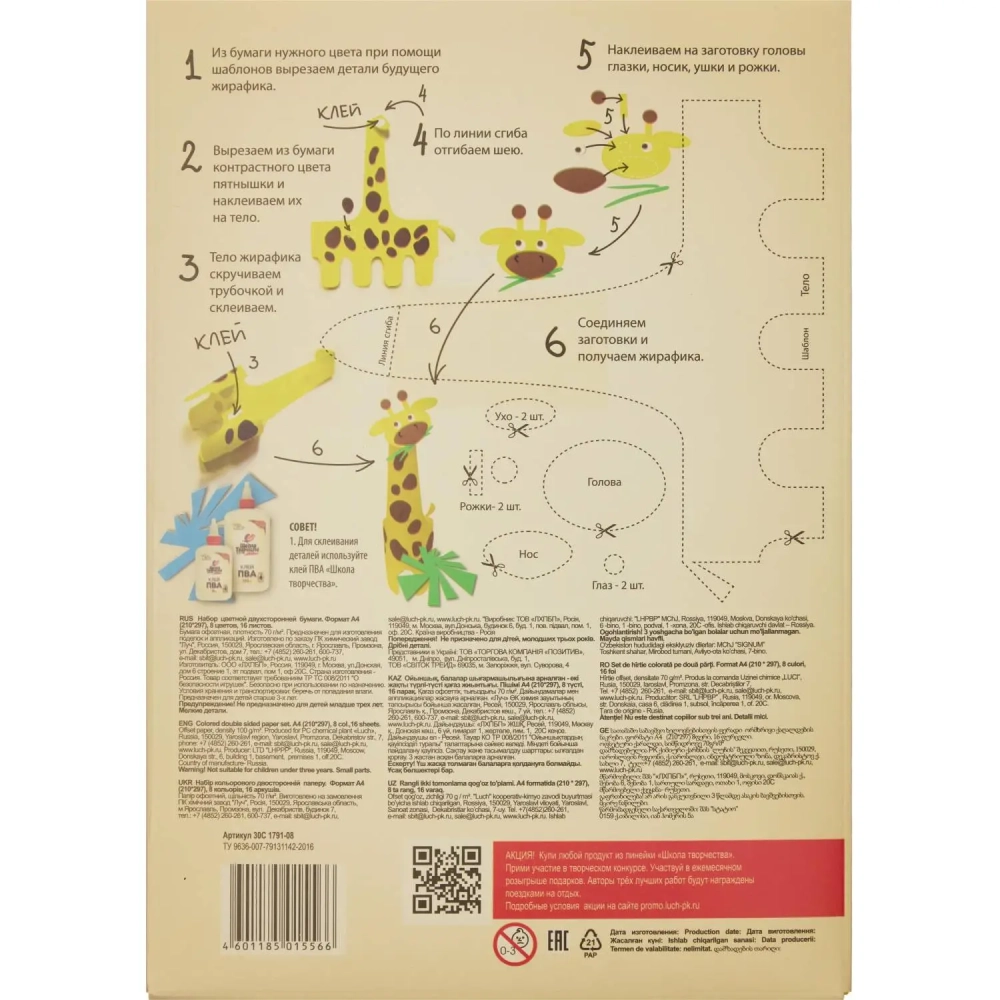 Бумага цветная А4,16л.8цв.двустор.немел,папка Луч Школа творчества 1791-08