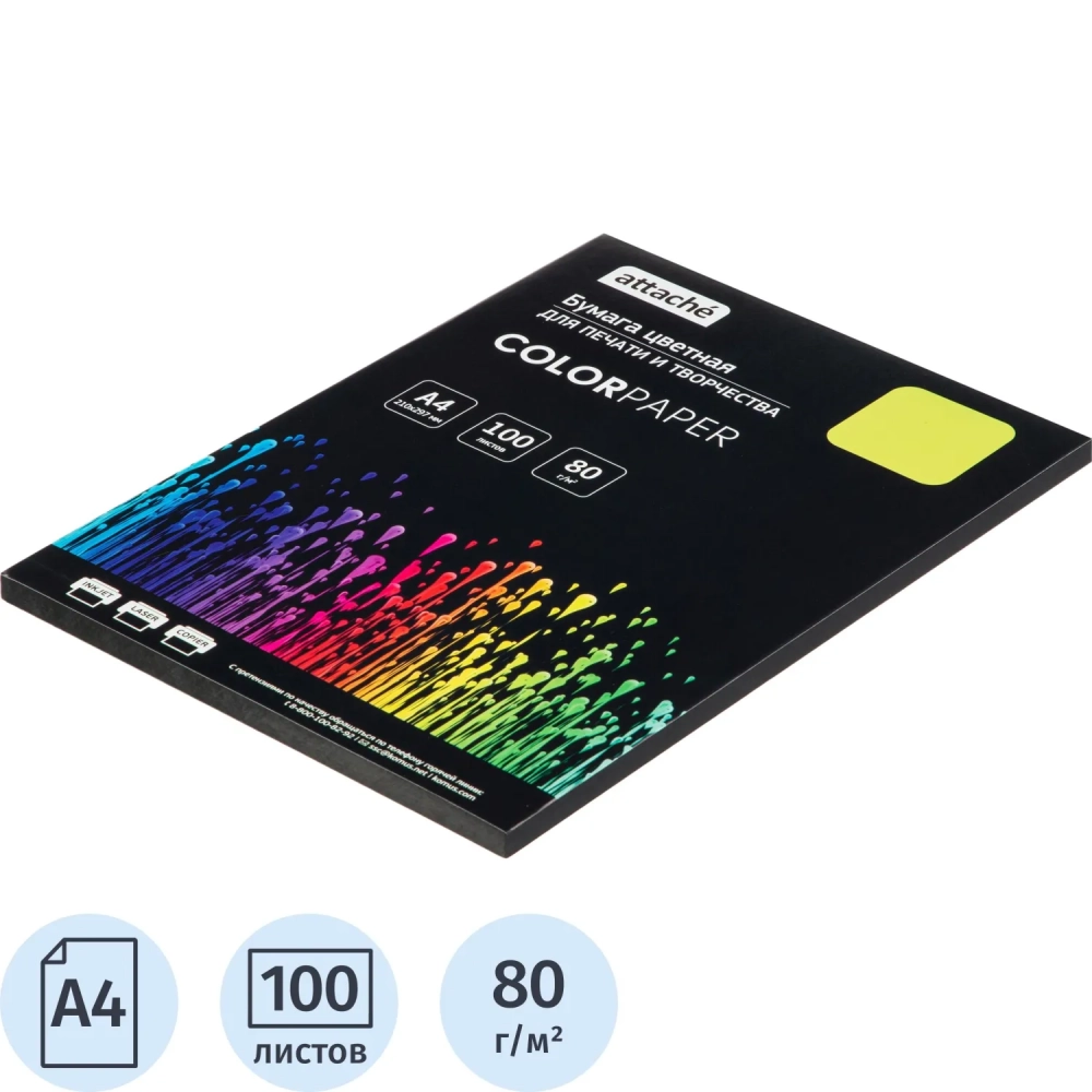 Бумага цветная Attache (черный интенсив), 80г, А4, 100 л