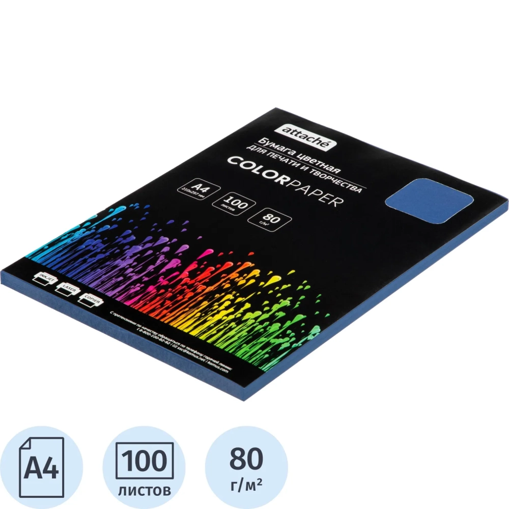 Бумага цветная Attache (голубой интенсив), 80г, А4, 100 л