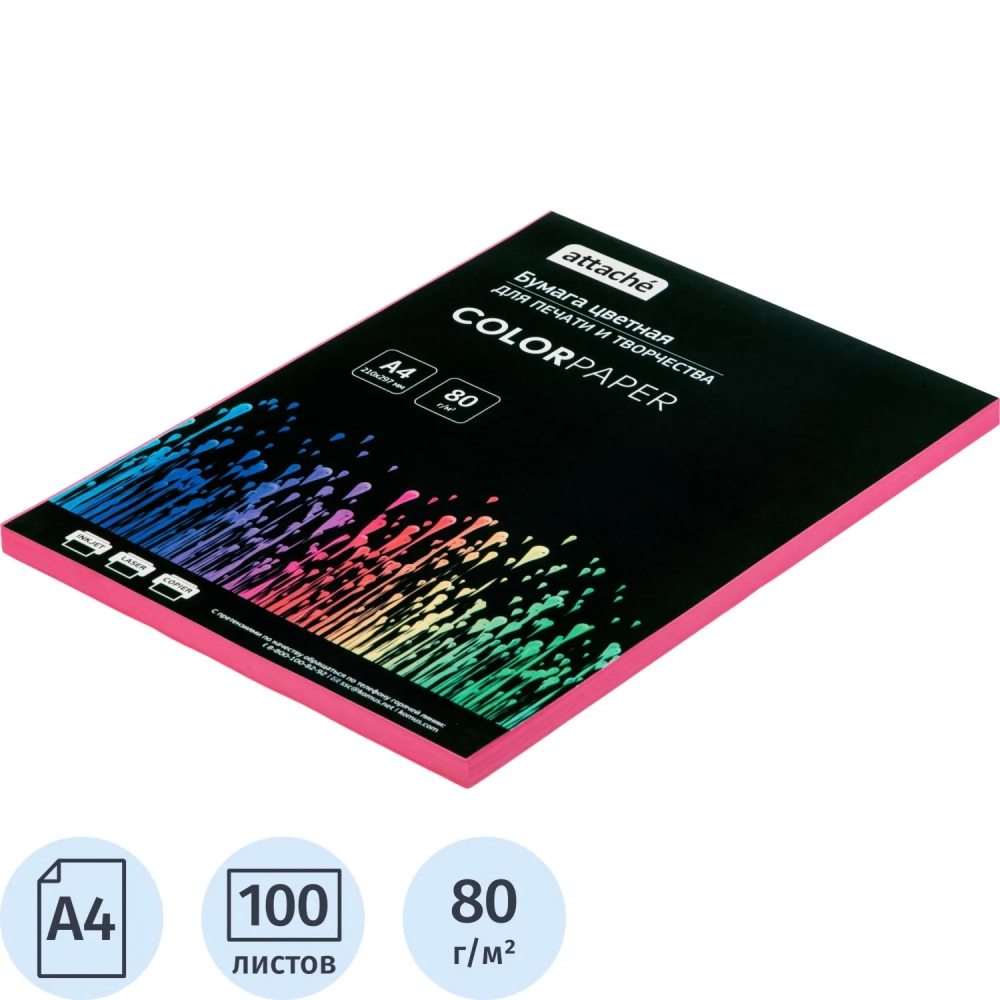 Бумага цветная Attache (розовый интенсив), 80г, А4, 100 л
