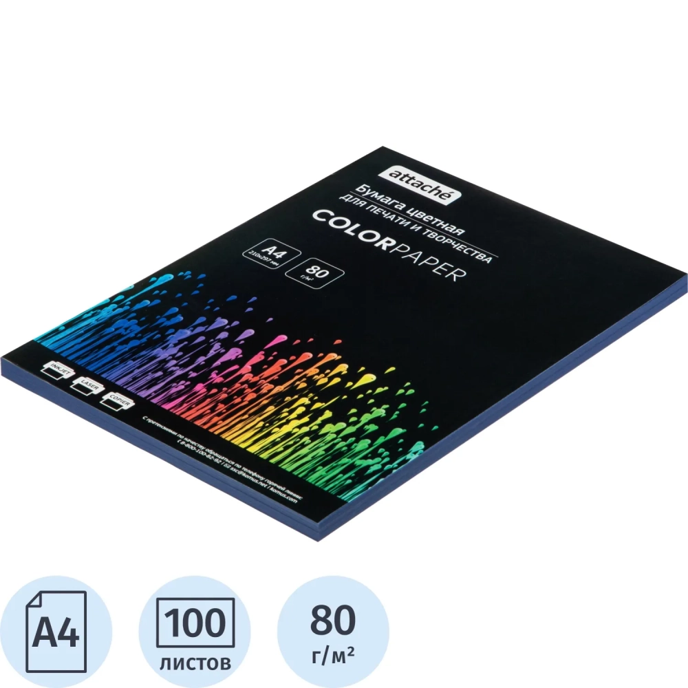 Бумага цветная Attache (синий интенсив), 80г, А4, 100 л