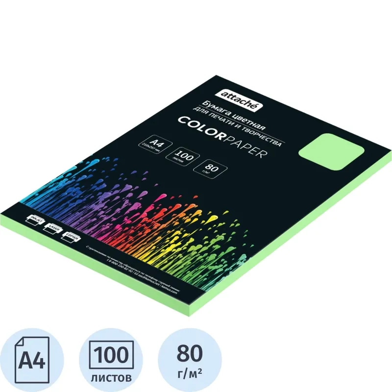 Бумага цветная Attache (зеленый пастель), 80г, А4, 100 л