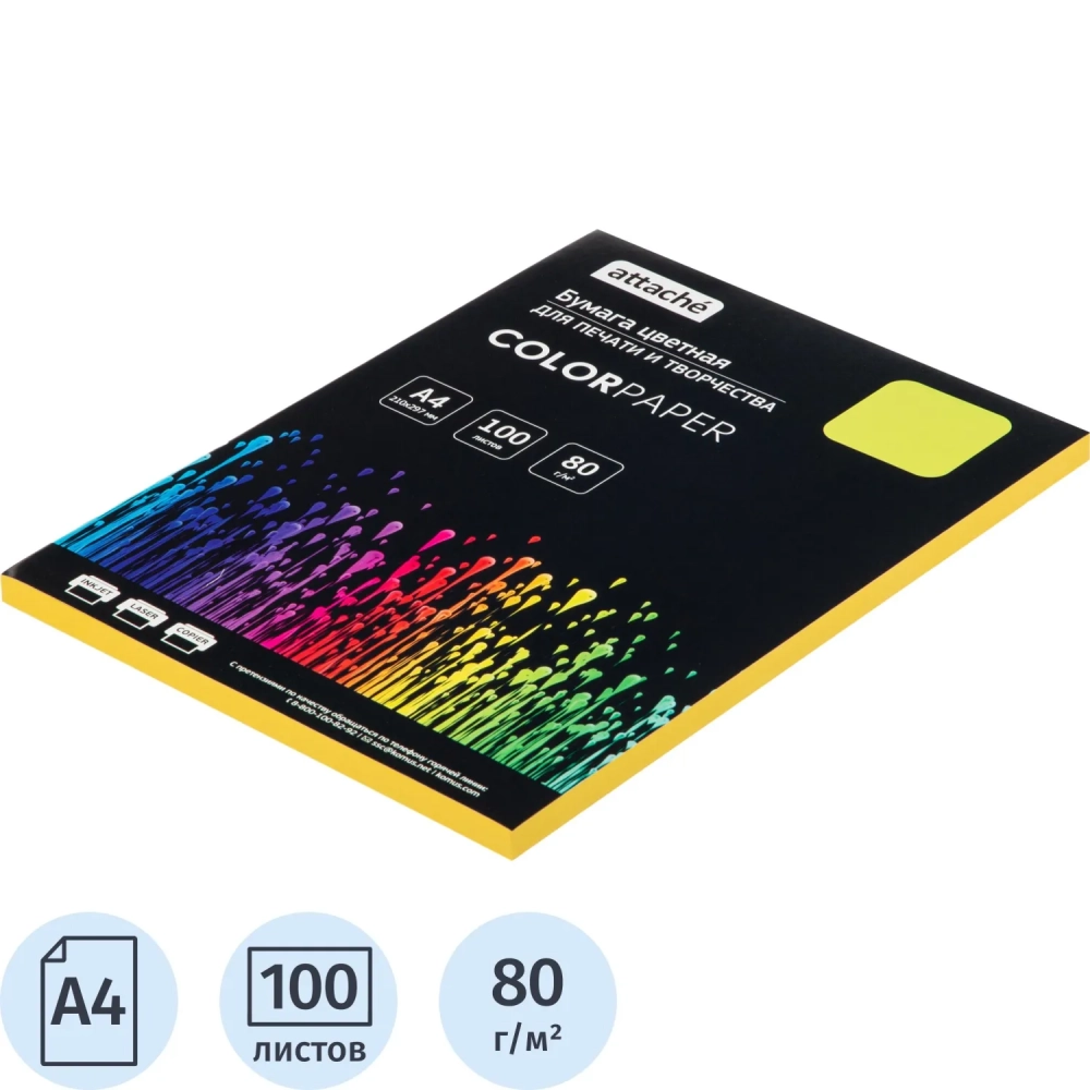 Бумага цветная Attache (желтый интенсив), 80г, А4, 100 л