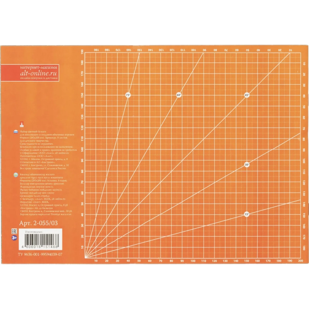 Бумага цветная для декорирования и творчества а4 8л. Шелк 2-055/03