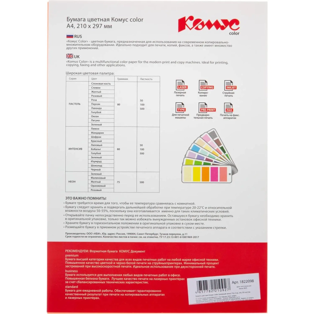 Бумага цветная Комус Color (зеленый неон) 75+-5гр, А4, 50 л
