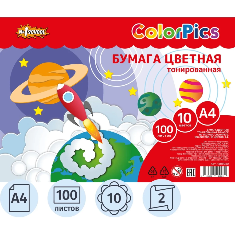 Бумага цветная Комус Класс 100л, 10цв, тонированная в массе, пакет