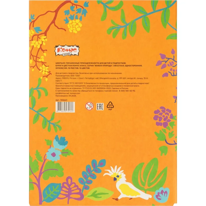 Бумага цветная Комус Класс 10л, 10цв, А4, Живая природа, офсет