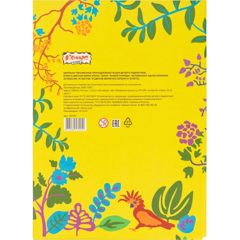 Бумага цветная Комус Класс 10л, 8цв+серебр/золото, А4,Живая природа,мелован