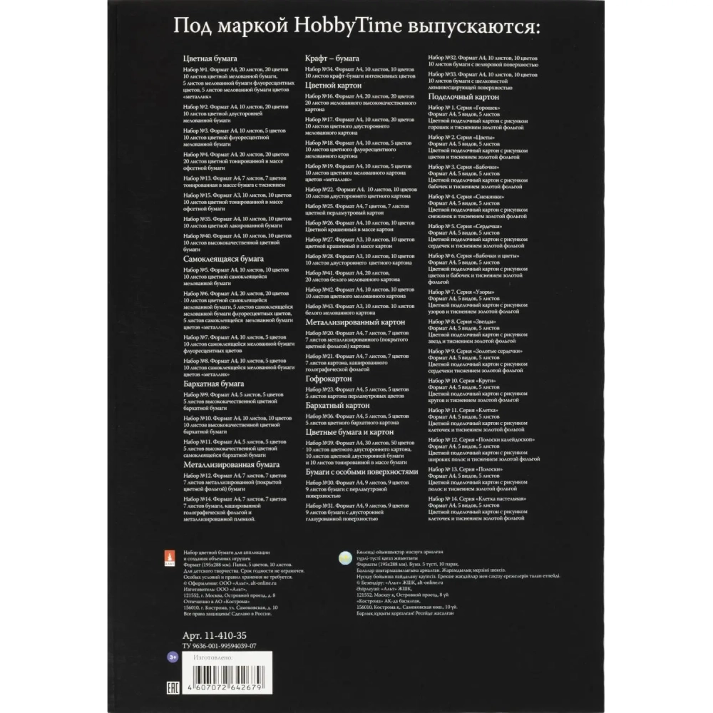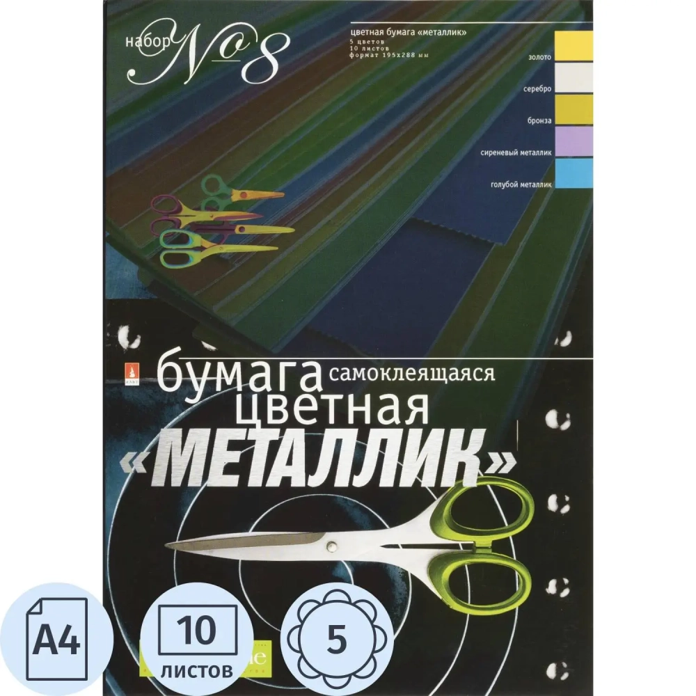 Бумага цветная набор №8 цв.бумаги самокл. а4 5 цв.10л металлик 11-410-35