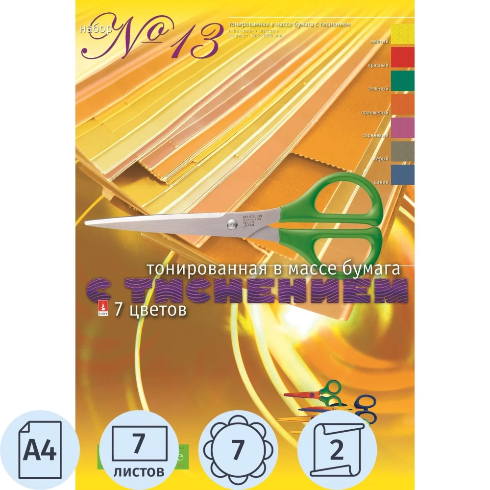 Бумага цветная с фактур.тиснением.,а4,7л.,7цв.,11-407-197