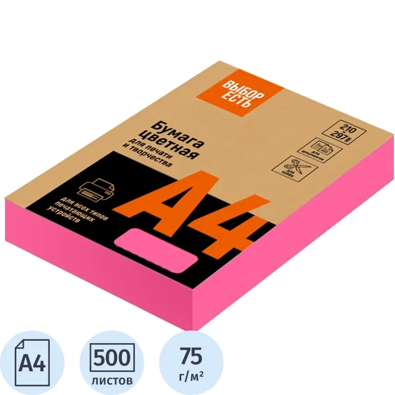 Бумага цветная Выбор есть (А4,75г,малиновый неон) пачка 500л