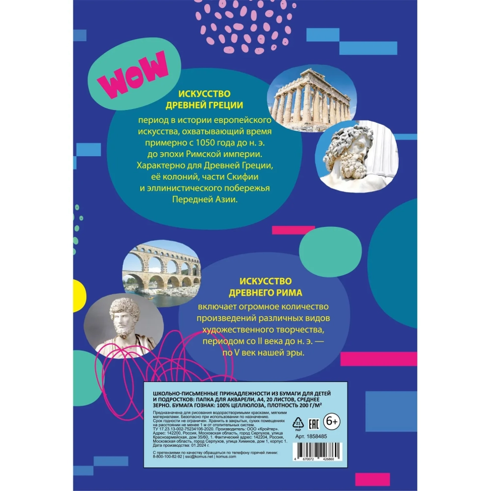 Бумага для акварели Комус Арт А4, 20 л., 200 г/м2, ГОЗНАК, в папке