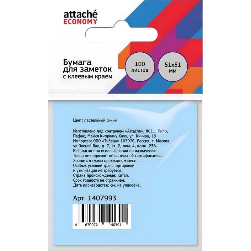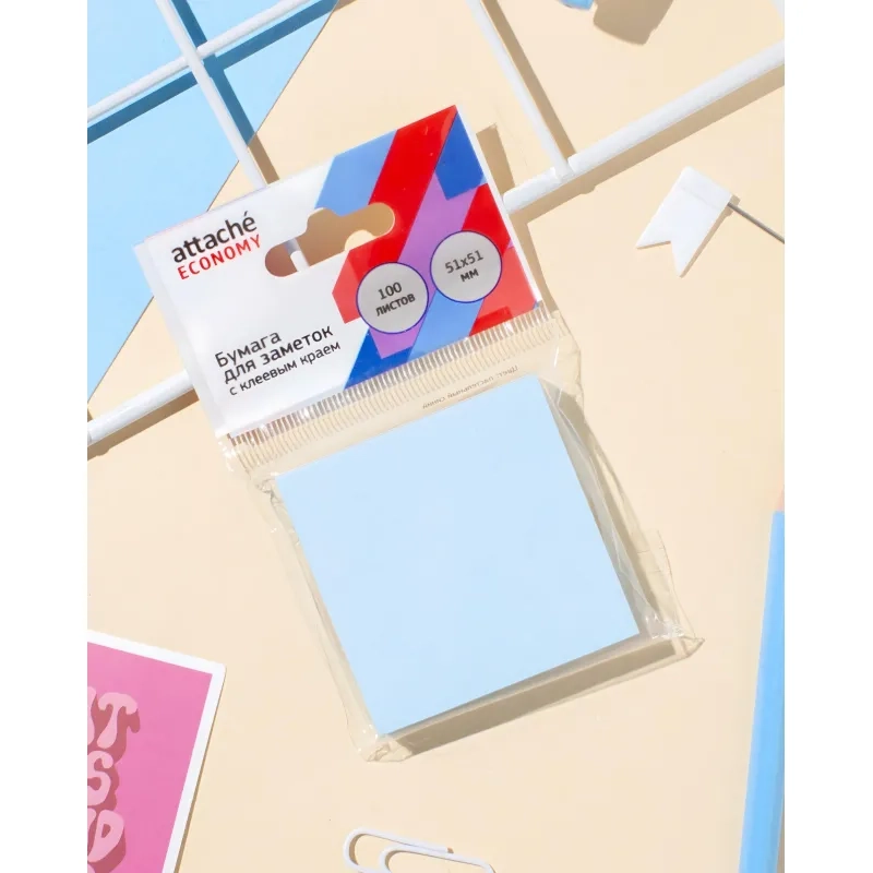 Бумага для заметок с клеевым краем 51x51мм 100 л пастельный синий