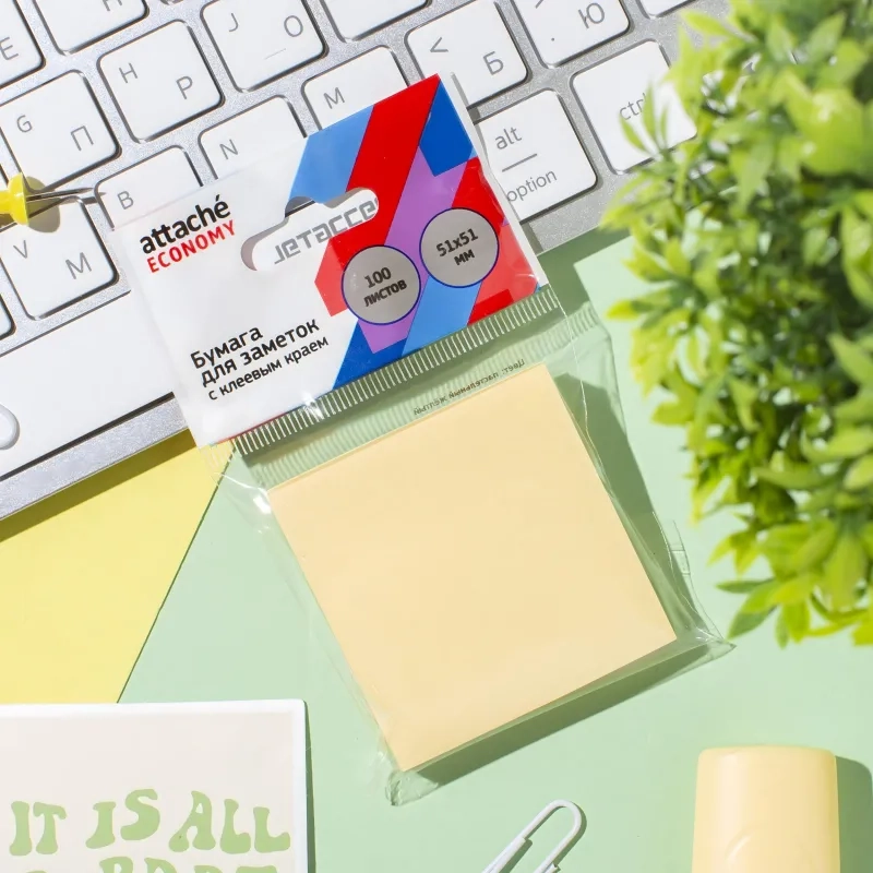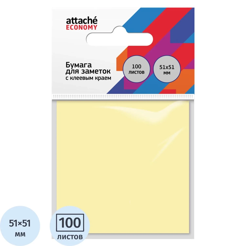 Бумага для заметок с клеевым краем Economy 51x51 мм 100 л пастельный желтый