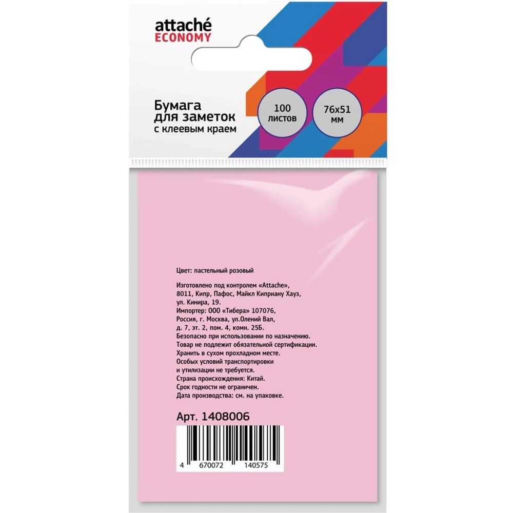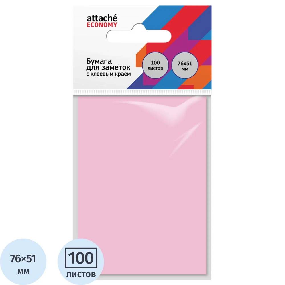Бумага для заметок с клеевым краем Economy 76x51 мм, 100 л, пастел розовый